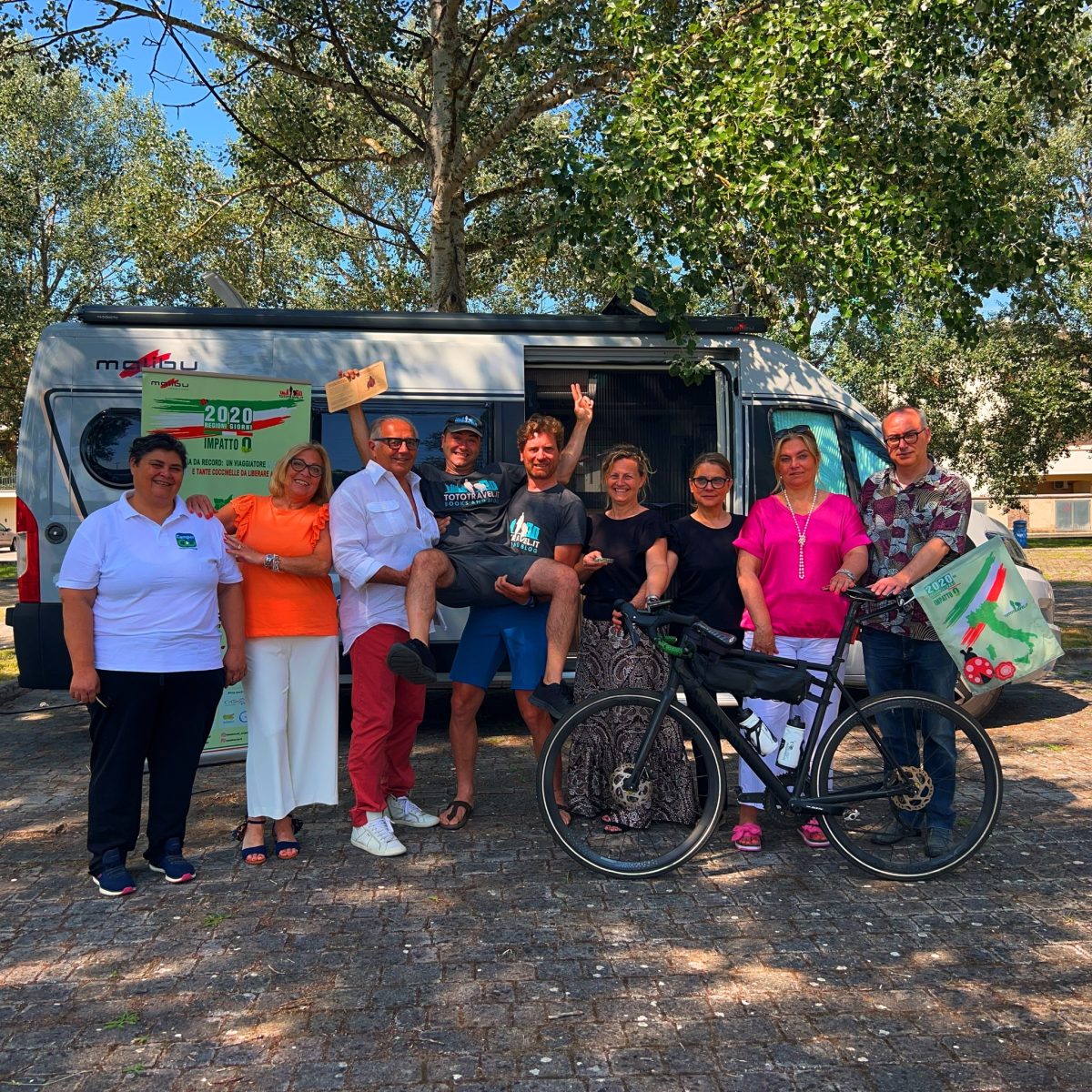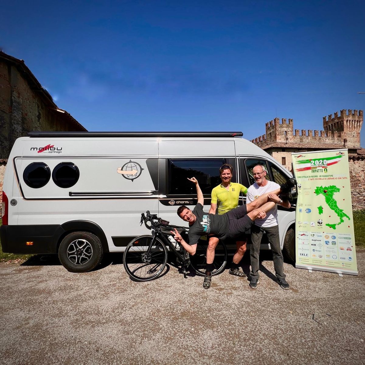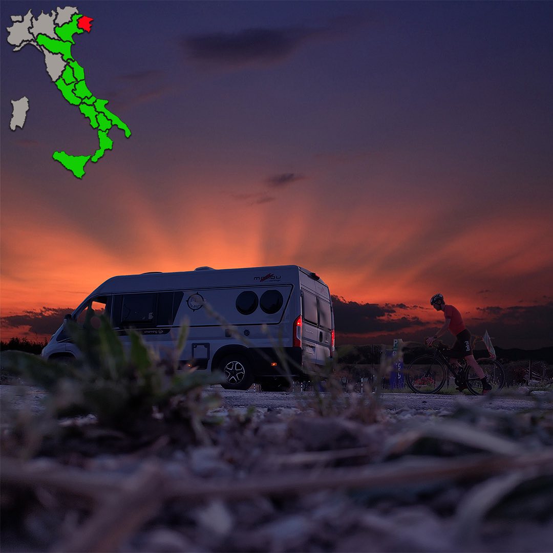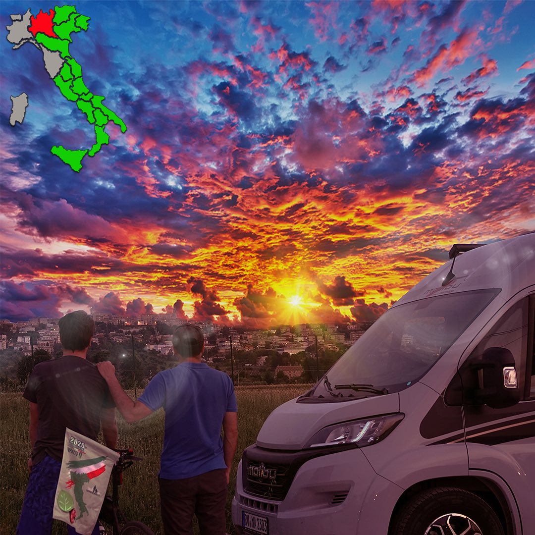 Salvatore Magliozzi, blogger-viaggiatore ideatore del progetto, ce l’ha fatta di nuovo. Ha attraversato l’Italia in lungo e in largo sul suo camper Malibu, riuscendo a coprire più di 3500 km nei venti giorni prestabiliti. E con lui, vero “eroe” dell’impresa, il biker Enrico Diluviani, che per il secondo anno di fila non ha ceduto alla fatica (e a qualche incidente) riuscendo a completare il suo personale tour in sella ad una bici muscolare.