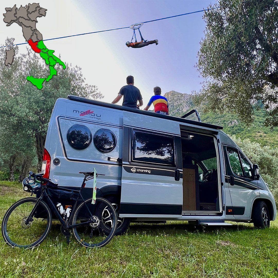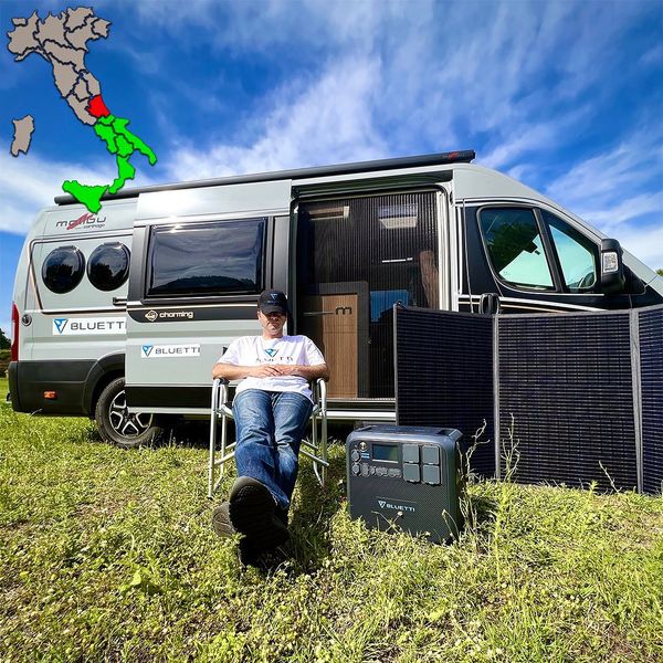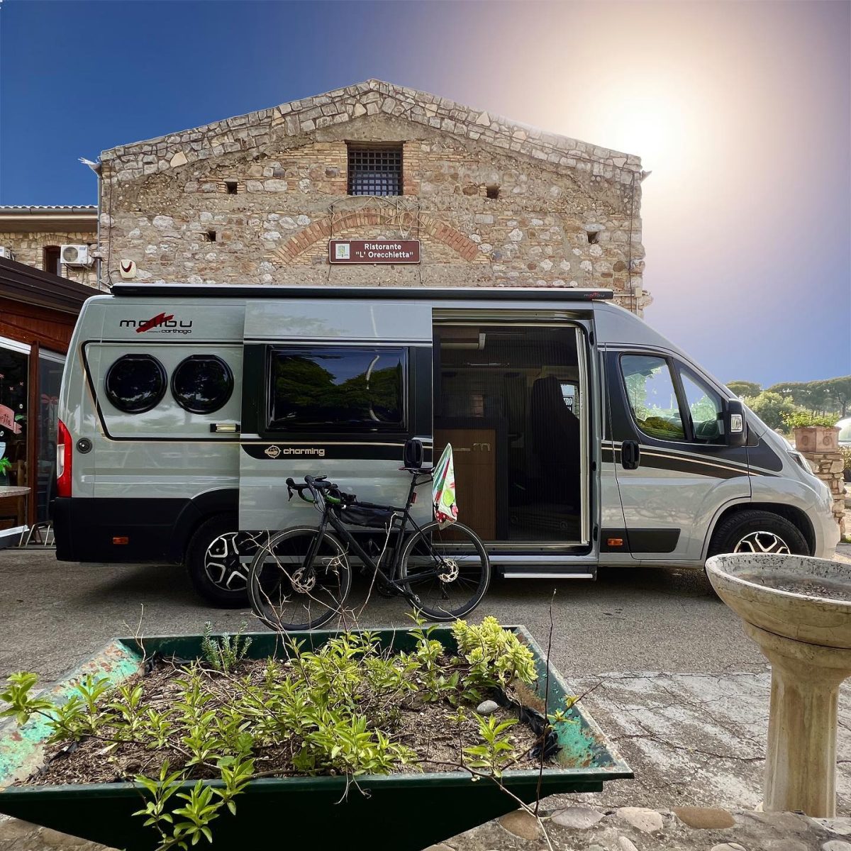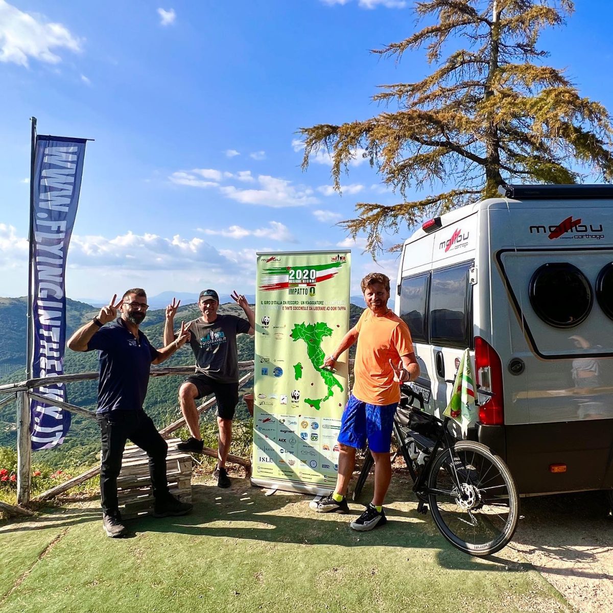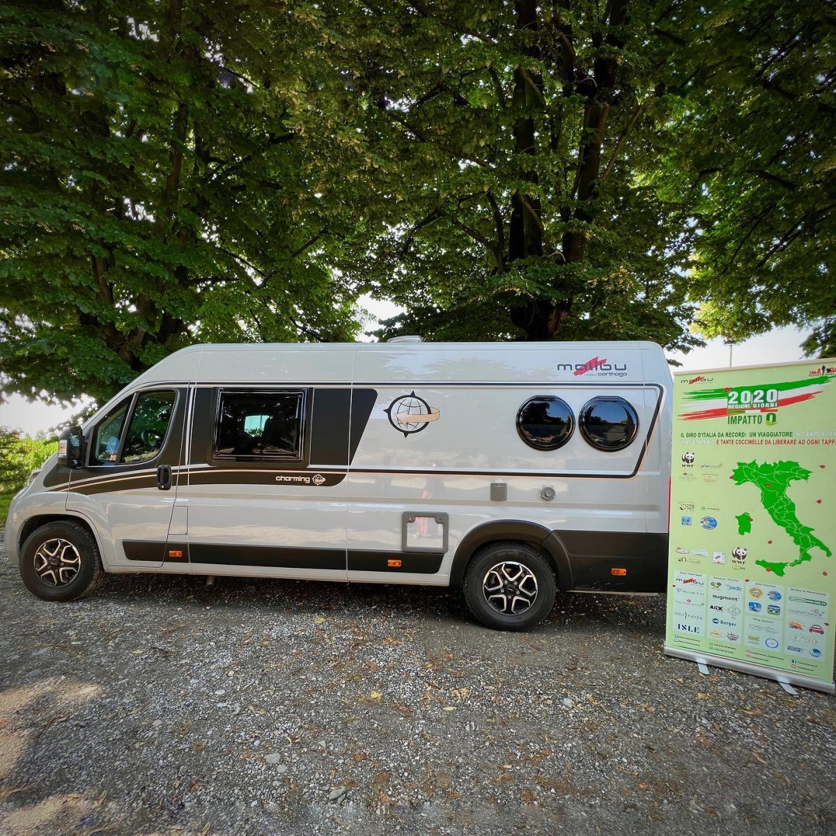 L’autogestione energetica del campervan Malibu (grazie ad apposite power-unit Bluetti ricaricabili con pannelli solari), sta rendendo per nulla impattante la presenza della carovana nei territori attraversati. Magliozzi e il suo team, una volta arrivati al traguardo di tappa, si muovono infatti in monopattino elettrico (Augment) quando devono visitare centri storici o punti d’interesse.