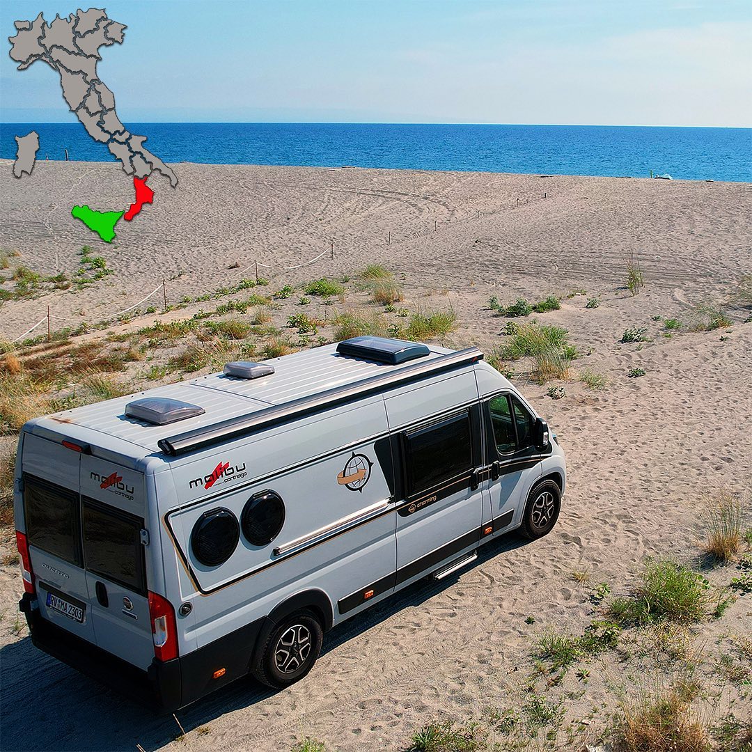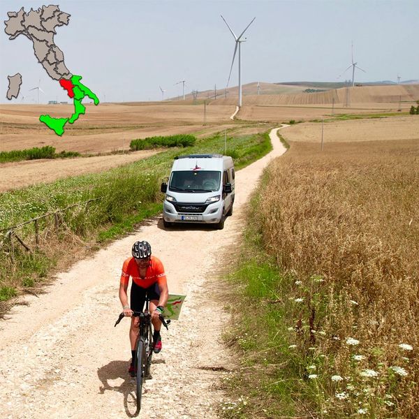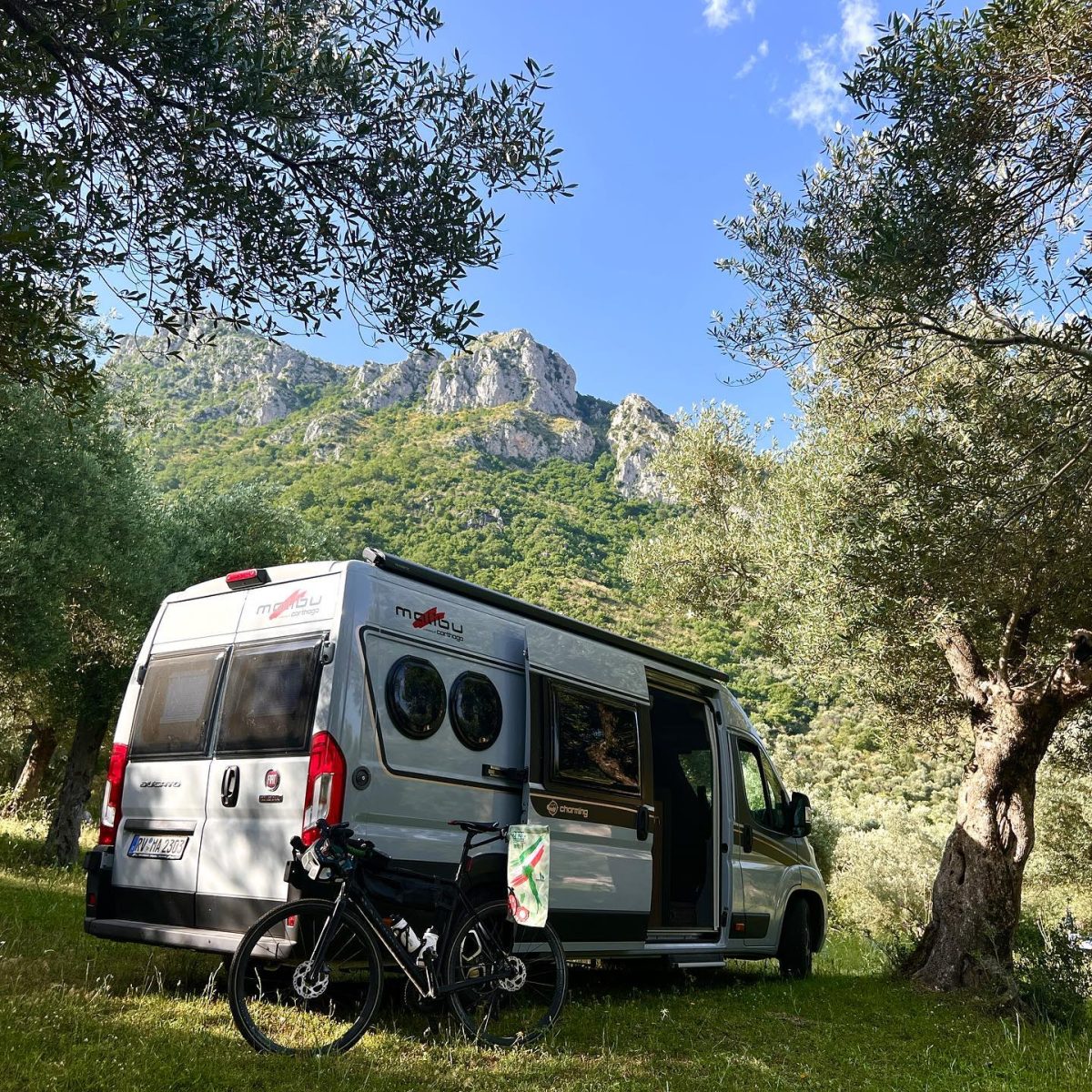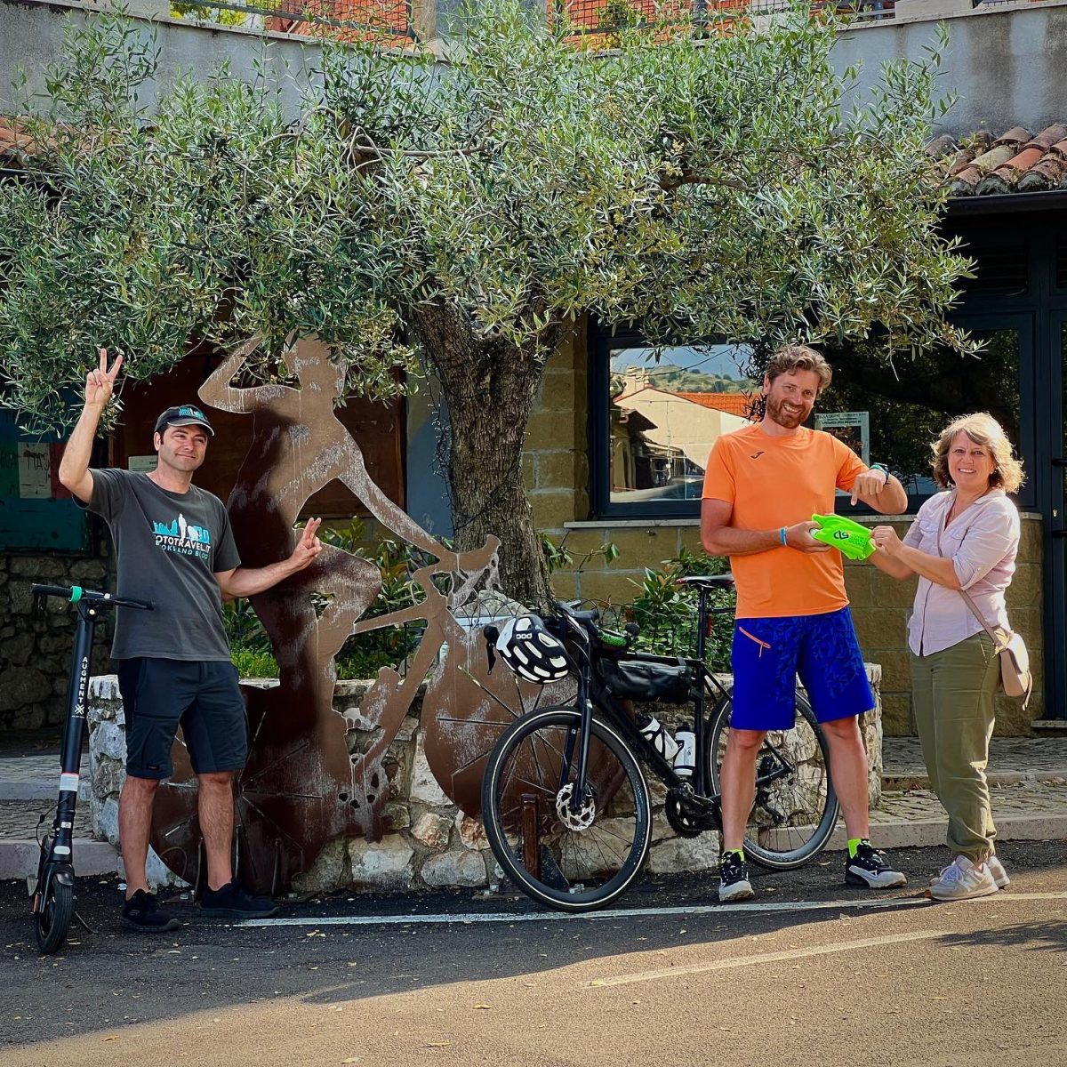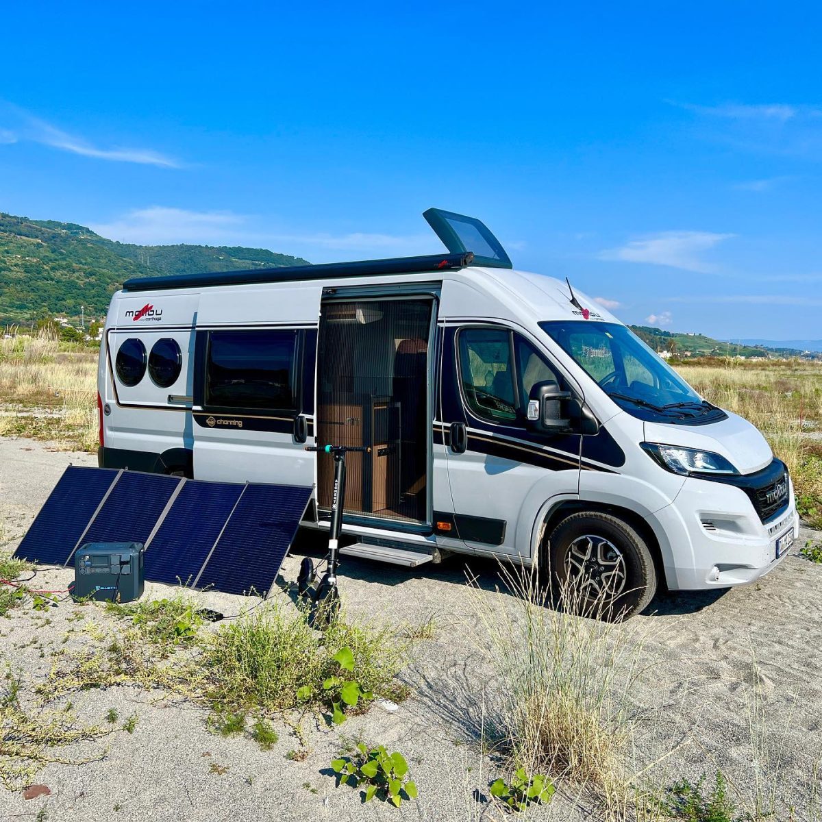 L’autogestione energetica del campervan Malibu (grazie ad apposite power-unit Bluetti ricaricabili con pannelli solari), sta rendendo per nulla impattante la presenza della carovana nei territori attraversati. Magliozzi e il suo team, una volta arrivati al traguardo di tappa, si muovono infatti in monopattino elettrico (Augment) quando devono visitare centri storici o punti d’interesse.