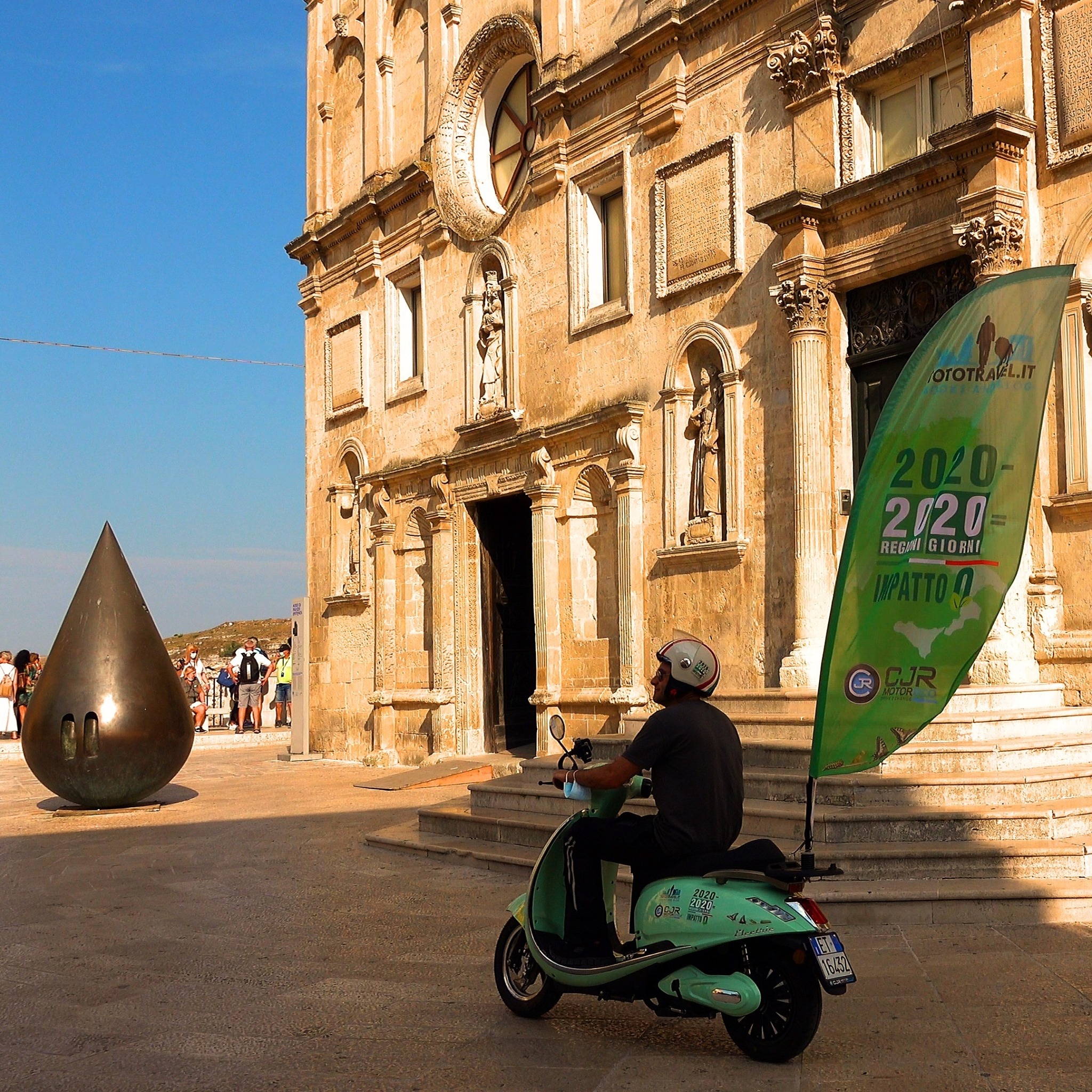 Il tour ha avuto inizio il 12 settembre da Bagherìa, alle porte di Palermo. In sella all’e-scooter Trinity dell’azienda italiana CJR Motoreco – per l’occasione adornato con un’evidente “vela” di riconoscimento – Magliozzi ha attraversato la Sicilia “sbarcando” in Calabria e fermandosi sulla costa di Pizzo Calabro. Il giorno seguente il viaggio è ripartito alla volta della Basilicata: è stata l’affascinante Matera ad accoglierlo, tra i rinomati Sassi, patrimonio Unesco.