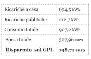 Ipotizzando un costo finito del kWh domestico di 0,25€, i circa 700kWh di ricariche a casa hanno comportato una spesa di 173,63€. Che, sommati ai 134,33€ spesi alle colonnine pubbliche restituiscono un costo totale di 307,96€ con un risparmio di quasi 200€ (198,71€ per la precisione). Se consideriamo i minori costi di manutenzione bollo e che questi dati sono frutto del periodo di bassa produzione del fotovoltaico, si può presupporre per i prossimi mesi risparmi ancora maggiori.