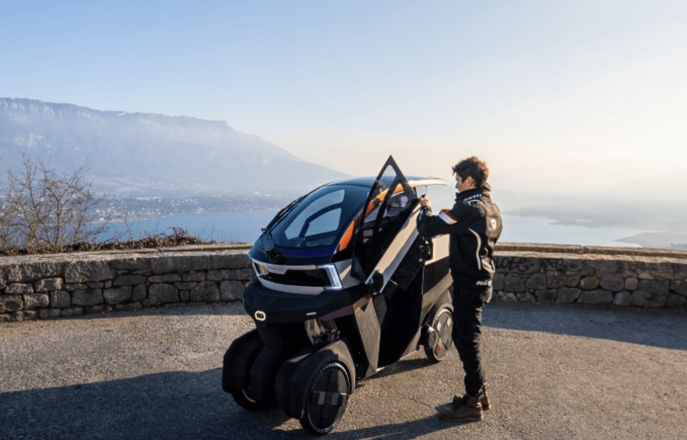 AEMotion è una start-up francese che ha sviluppato un’idea radicale di veicolo per il trasporto urbano, ha quattro ruote come un’auto, ma piega come uno scooter.