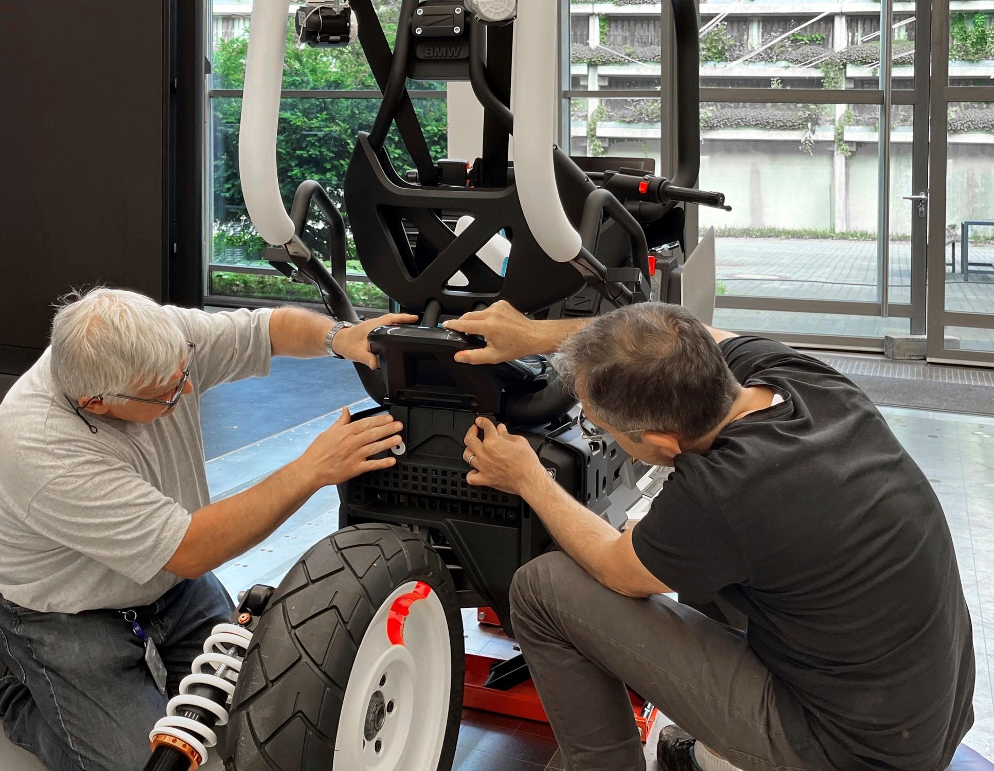 Dal punto di vista estetico, il BMW Vision CE rompe di nuovo con le convenzioni ribaltando quelle che sono le proporzioni canoniche. Le linee sono leggere, il passo lungo e una struttura aperta danno al mezzo un aspetto più dinamico e futuristico. Non manca un tocco di esclusività con l’impiego di alluminio verniciato. Non c’è però solo forma nel novo CE, c’è anche tanta sostanza, tra le soluzioni tecniche spicca il sistema di bilanciamento automatico, che mantiene il veicolo perfettamente stabile anche da fermo.