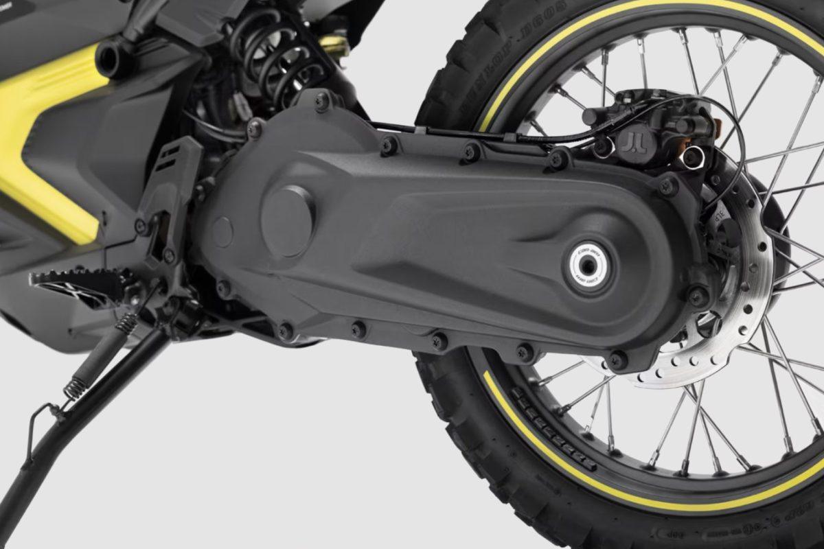 Le due moto sono dei concentrati di soluzioni innovative e smart. Il raffreddamento a liquido ad esempio è comune per tutte le componenti sensibili: motore, batteria e inverter. La batteria poi ha anche funzioni strutturali e questo consente di risparmiare qualche chilogrammo in più. Questo dovrebbe garantire prestazioni migliori sia durante la guida che in fase di ricarica. Le Can-Am hanno un caricatore da 6,6 kW in corrente alternata che in meno di un’ora porta la carica dal 20 all’80%. Il motore dell’austriaca Rotax eroga 35 kW ed è alloggiato tra la batteria e il forcellobe posteriore. Una posizione che permette di alloggiare la catena all’interno del forcellone stesso con tanto di tensionatore autoomatico.