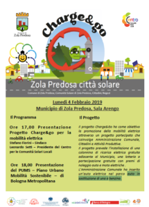 Il Comune mette la colonnina, le attività economiche l’energia e i cittadini prendono confidenza con auto e moto elettriche. Il progetto Charge & Go del Centro Comunità Solari Locali funziona a Medicina, provincia di Bologna. E si ripete il 4 febbraio, a Zola Predosa. Vaielettrico.it ha dato il patrocinio al progetto e documenteremo la presentazione.