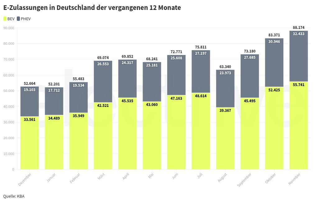 Da notare che una quota significativa delle vendite si sta spostando sugli ibridi “light” e “full”, che il KBA (l’agenzia federale che rilascia omologazioni e componenti di veicoli valide in Germania) conteggia come una categoria unica pur includendo modelli dalle capacità elettriche molto diverse.