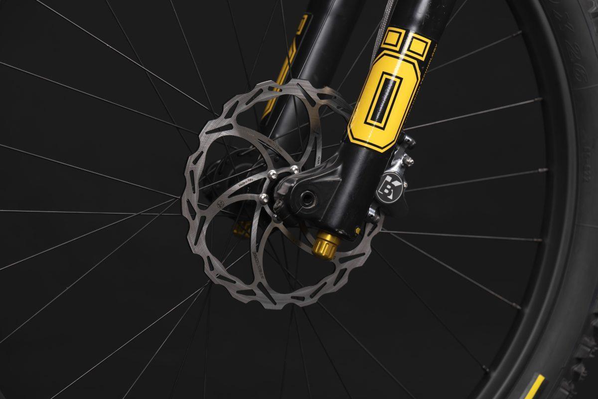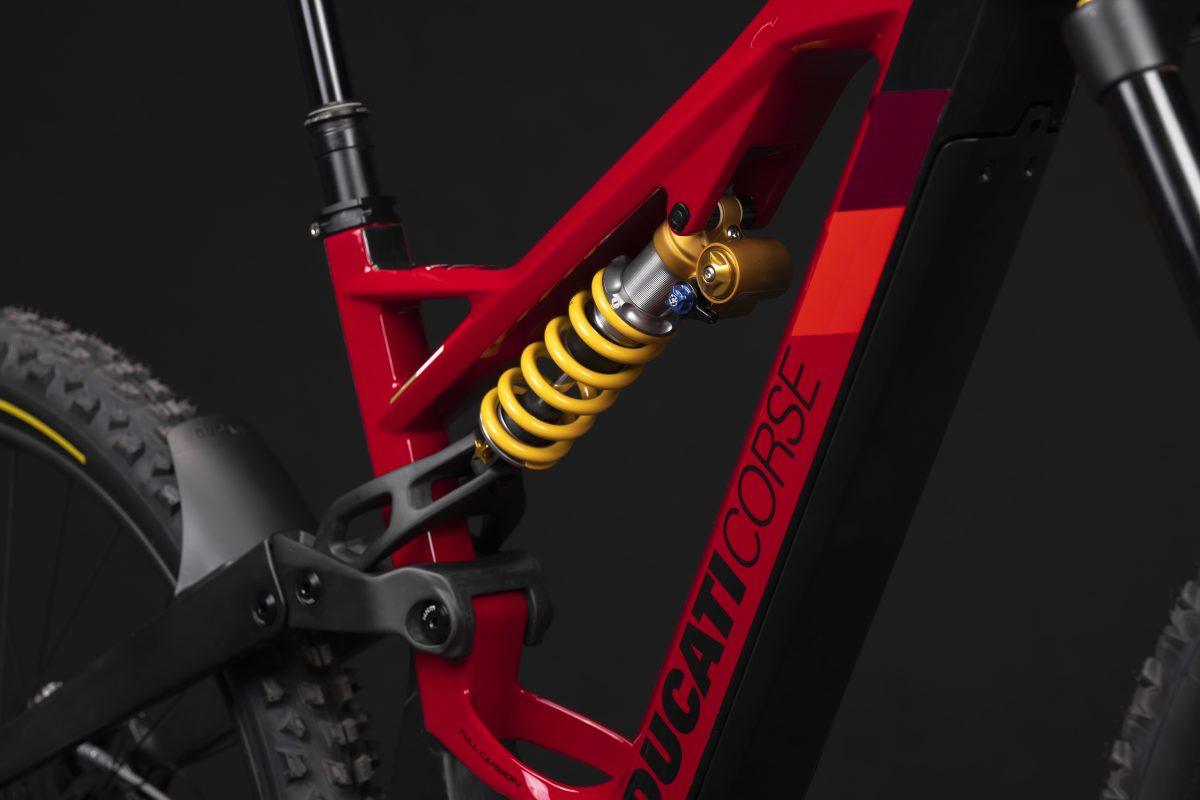 Per la forcella si è scelta una Öhlins RXF38 m.2 ad aria con escursione di 180 mm e per l’ammortizzatore a molla sempre Öhlins m.2 con tecnologia TTX ed escursione 170 mm.
