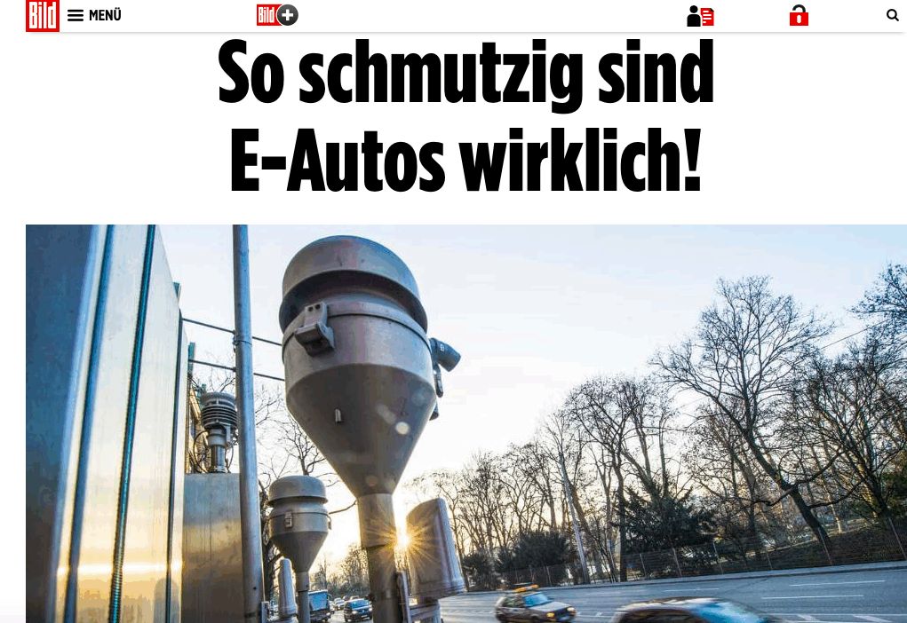 Ma il bello (o il brutto) deve ancora venire. Perché la sporcizia vera, secondo la BILD, sta nelle “nelle famigerate polveri sottili…. Secondo un nuovo rapporto dell’OCSE, è improbabile che le famigerate emissioni di particolato diminuiscano con un maggior numero elettriche. Al contrario!“. In pratica: si tratta delle emissioni “non derivanti dal motore“, come le polveri rilasciate con l’utilizzo dei freni e il rotolamento delle gomme. Peccato che il rapporto non dica esattamente questo. Auke Hoekstra, un ricercatore dell’università olandese di Eindhoven e noto cacciatore di bufale in materia, se l’è letto tutto. Risultato: le elettriche, come ovvio, non eliminano del tutto queste emissioni. Ma anche su questo aspetto hanno un bilancio migliore rispetto alle auto tradizionali. Hoekstra ha invitato ufficialmente la BILD a correggere quanto scritto, cosa che il quotidiano di Amburgo ovviamente si guarderà bene dal fare.