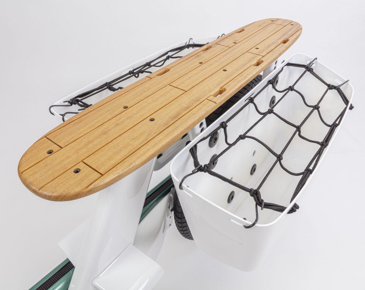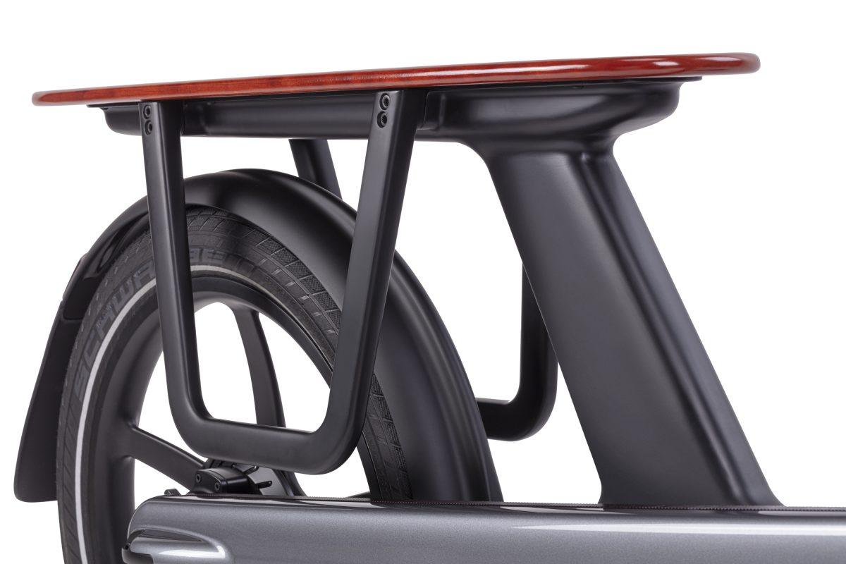 Il ponte posteriore delle Gocycle CX è compatibile con i seggiolini per bambini e gli accessori MIK. Disponibile legno premium di ciliegio e teak opzionale. Inoltre va ricordato che le cargo eBike della gamma sono tutte pieghevoli per essere trasportabili e riponibili in poco spazio.