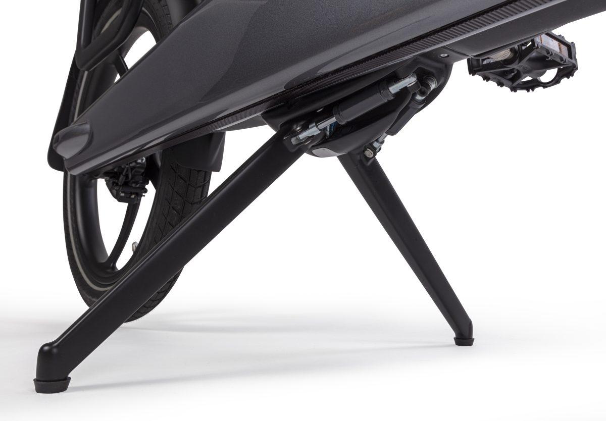 Persino il cavalletto centrale retrattile a doppia gamba è una sfida per l’azienda di Thorpe. Infatti quello montato sulla eBike cargo è brevetto Gocycle e comunque assicura che sarà in grado di sopportare il peso di tutti i 190 kg di portata massima. Inoltre, come anticipato in precedenza, la grande novità è il sistema di sicurezza HaloCX. “Realizzato in fibra di carbonio, è leggero ma incredibilmente resistente. Senza spigoli vivi o giunti saldati, morbido da impugnare e da sentire, è un mix perfetto di sicurezza e divertimento”. Spiega ancora il realizzatore Richard Thorpe.