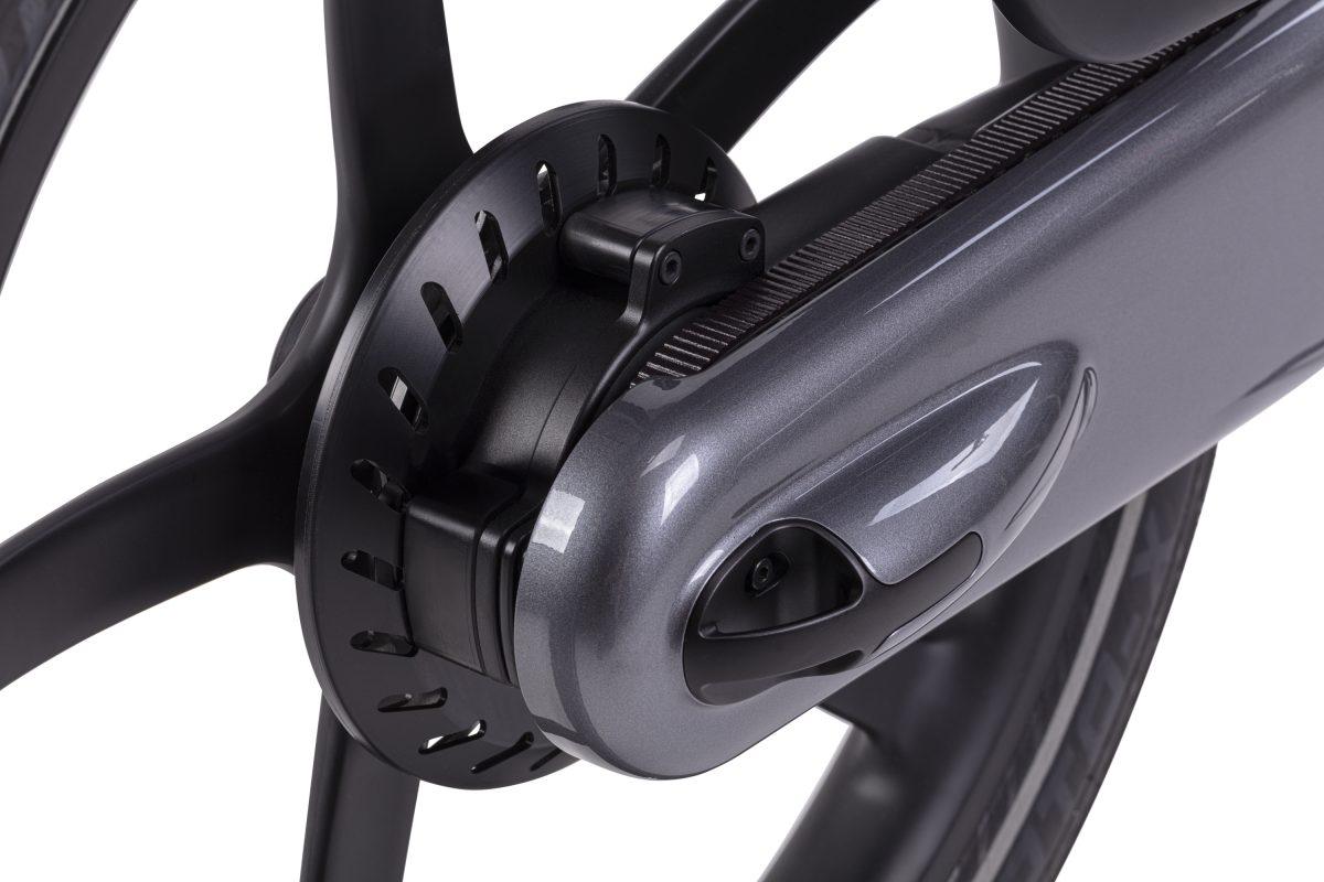 La tecnologia in attesa di brevetto si trova tutta all’interno del corpo del manubrio che include un punto di montaggio Quad Lock opzionale. Un bullone fornisce un facile accesso per la regolazione e la messa a punto dei freni. Disponibile esclusivamente sul modello halo Gocycle CX+. La trasmissione a cinghia nel mozzo Shimano Nexus a 5 velocità usa una cinghia in carbonio Gates CDX integrata con il sistema Cleandrive brevettato di Gocycle.