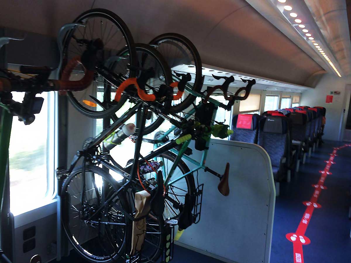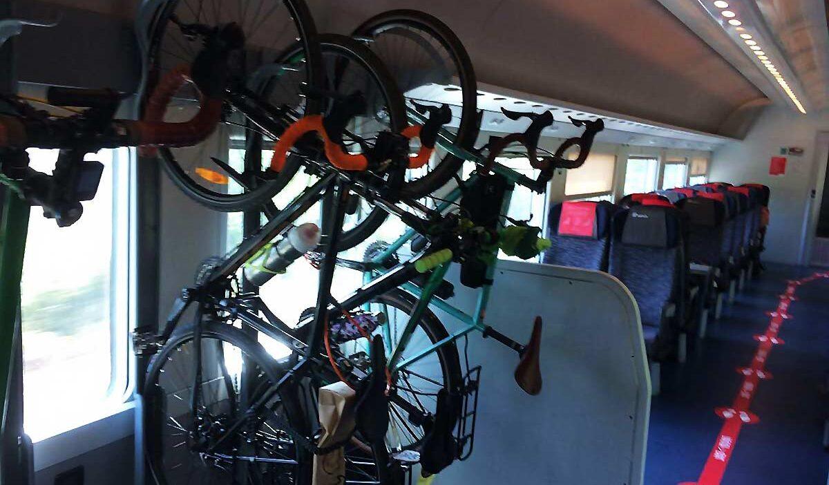 Una volta in treno va cercata la carrozza 3 dove sono presenti 6 posti bici + 2 punti di ricarica per le e-bike. Le bici normali o a pedalata assistita devono essere agganciate in modo verticale. È possibile comunque trasportare anche la bicicletta pieghevole se chiusa o smontata, contenuta in una sacca, posizionandola negli opportuni spazi riservati ai bagagli. Il servizio è gratuito per una sola bicicletta.