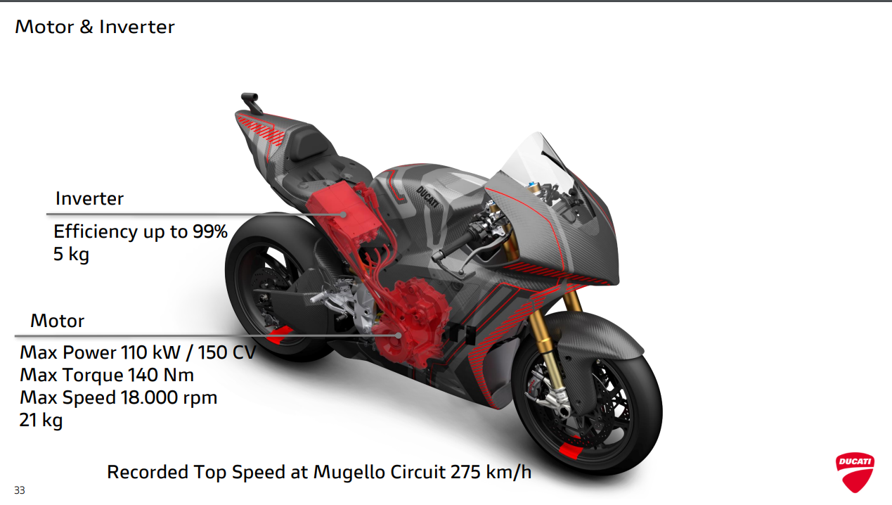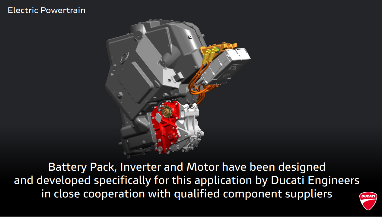 «E’ stata una scelta precisa», ha detto Domenicali. «Abbiamo voluto fare di questo prototipo un laboratorio di esperienza e una scuola di formazione per i nostri uomini, sviluppando le competenze in quel che ci mancava, cioè la tecnologia elettrica». Infatti il progetto «ha una grande rilevanza strategica per il futuro elettrico di Ducati, mantenendo ben saldo il nostro DNA».