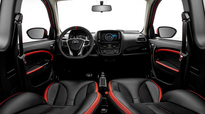 Progettata per uso strettamente urbano e rivolta ai giovani da 14 anni in su con patente AM, questa micro luxury car ha tutte le dotazioni di un’auto premium: servosterzo, sensori di parcheggio, tettuccio apribile, impianto stereo, display a colori da 7 pollici, aria condizionata, telecamera posteriore, fari a LED a doppio raggio, sedili in pelle vegana e avviamento Keyless.