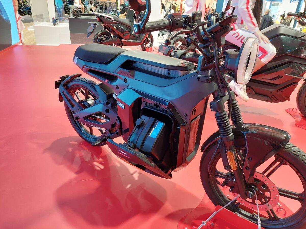 Allo stand NIU c’è anche la SQi, una piccola moto leggera. Arriva in Europa dopo essere già commercializzata in Cina. Un progetto destinato prettamente all’utilizzo urbano che nasce intorno a un telaio unibody pressofuso senza nessun giunto di saldatura. Raggiunge velocità massima di 45 km/h e ha una potenza di picco di 400 W. L’autonomia dichiarata arriva a 95 km. Sarà disponibile a partire dal 2024, ma non si conoscono ancora i prezzi.