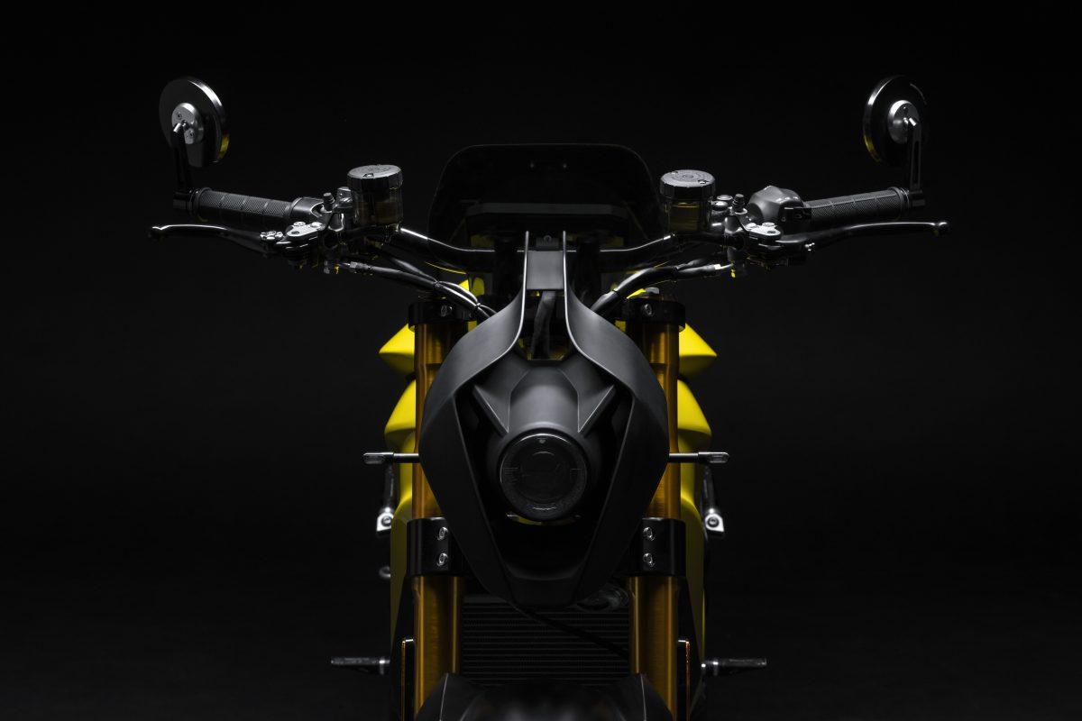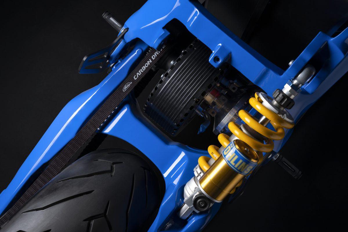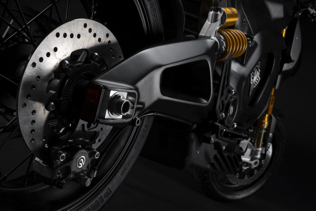 Due motori – uno termico da 451 cc ed uno elettrico da 9 kW – lavorano insieme per ottimizzare le prestazioni della moto a seconda delle necessità. La potenza massima combinata è di 70 CV. La batteria, che si ricarica grazie al motore termico, è da 50V- 27 Ah.