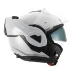 Il primo casco è omologato P/J ECE 22.06. Senza entrare nei dettagli tecnici, risponde ai requisiti di sicurezza di un casco integrale e, se togliamo la mentoniera anche a quelli di un jet. La possibilità di togliere la parte inferiore permette di riporre il casco nei vani sotto sella meno spaziosi ma soprattutto permette di avere due caschi in uno utilizzando l’Hyperlink come un jet nei mesi estivi.
