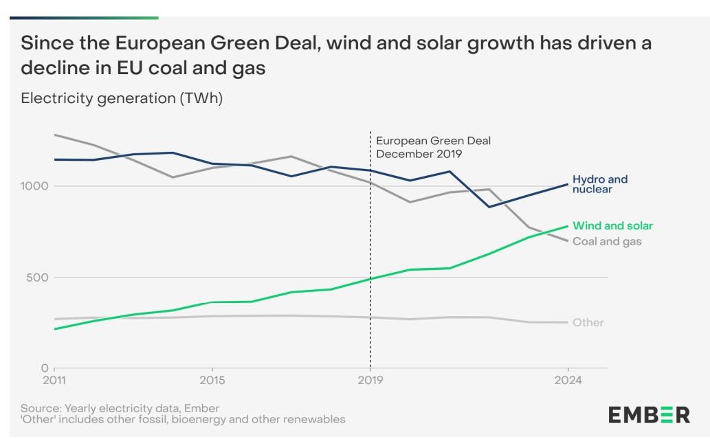 In Italia, senza i nuovi impianti eolici e solari installati tra il 2019 e il 2024, il Paese avrebbe dovuto importare 4 miliardi di metri cubi in più di gas naturale e 5 milioni di tonnellate di carbone, con un costo aggiuntivo di 3,3 miliardi di euro.