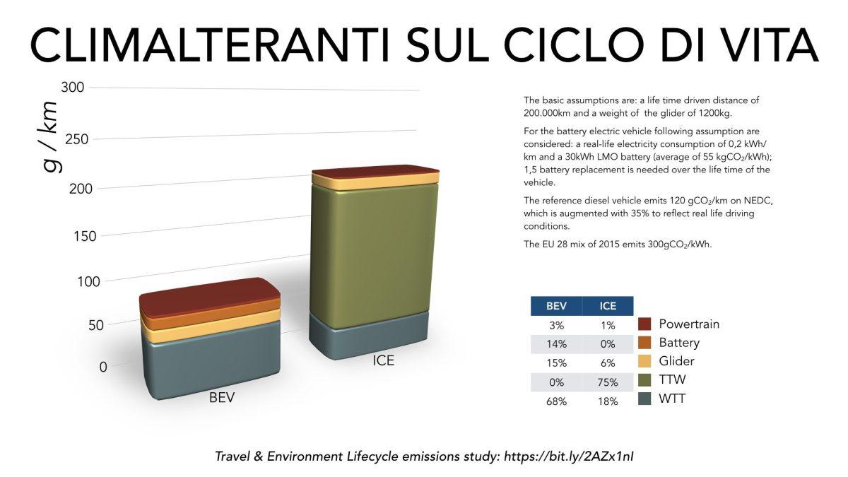 il dispendio energetico che le emissioni, la LCA di un veicolo elettrico è inferiore a quella di un’auto benzina/diesel.