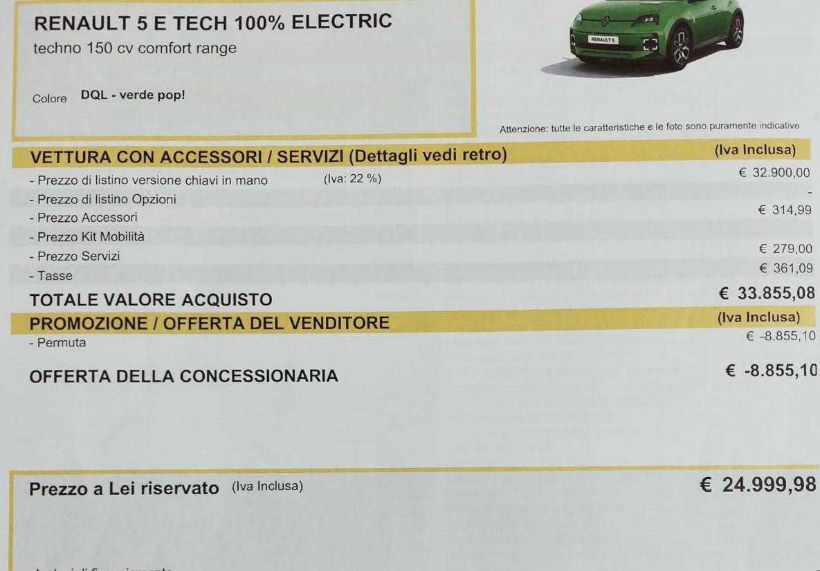 34k una R5 a pile, che manco vado da Milano a Torino e ritorno a 130 km/h, ho letto bene? Siamo alla follia, poi si chiedono perché il mercato è crollato.