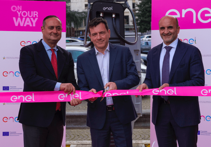 Le stazioni di ricarica installate hanno una potenza fino a 90 kW per singolo connettore e possono servire due veicoli in contemporanea. Consentendo un rifornimento rapido. Per accedere alle colonnine sono disponibili app e card Enel On Your Way, oltre a quelle degli oltre 160 Mobility Service Providers nazionali ed esteri interoperabili. Grazie alla presenza del POS, è inoltre possibile pagare direttamente alla colonnina con bancomat o carte di credito. Per celebrare il traguardo, Enel ha inaugurato la stazione realizzata di fronte alla sede del Ministero dell’Ambiente, in via Cristoforo Colombo 72, a Roma All’evento hanno partecipato, Simone Tripepi, Head of charging point operator di Enel. Fabrizio Iaccarino, Responsabile Affari Istituzionali Italia di Enel. Giorgio Centurelli, Capo Segreteria Tecnica del Ministro dell’Ambiente e della Sicurezza Energetica. E Fabrizio Penna, Capo Dipartimento Unità di Missione per il PNRR del Ministero dell’Ambiente e della Sicurezza Energetica.