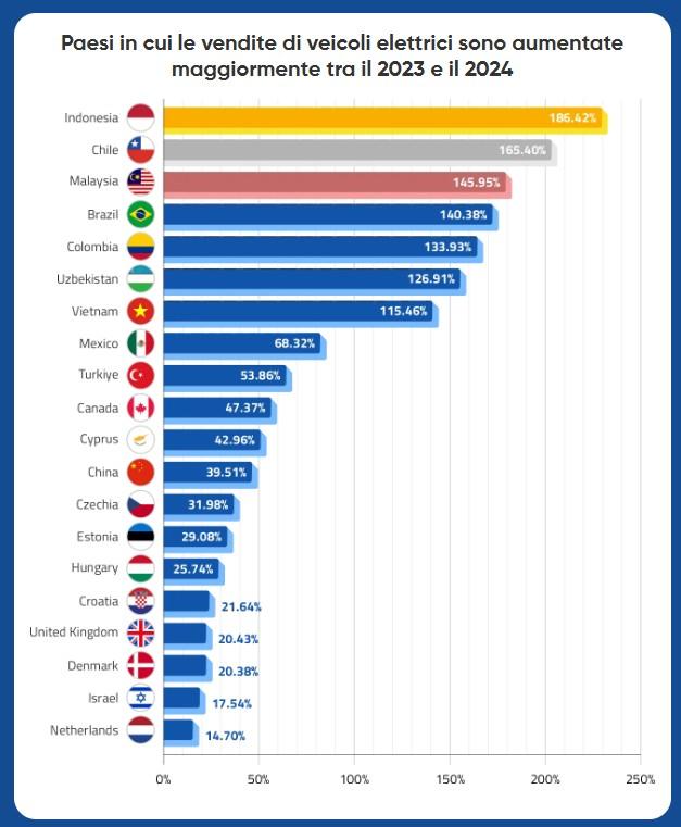 - Circa 11 dei 12 milioni di veicoli elettrici sono stati venduti anche in Cina, il resto è stato esportato in altri mercati.
