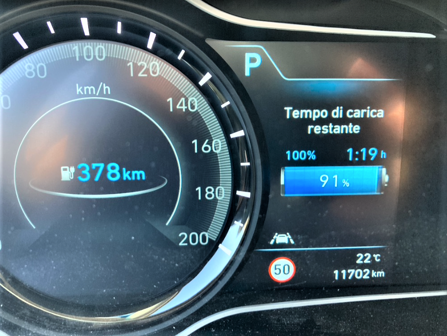 Successivamente, durante un viaggio in Italia con la mia Kona, ho provato per tre volte la ricarica ultrafast della batteria presso colonnine di Enel-X. In due casi, si trattava di una sosta per il pranzo ed i ristoranti erano “slow”. Di conseguenza la carica ultrafast andò avanti fino al 100% senza alcun problema. Non chiedetemi dettagli sulla curva di ricarica perché ero al ristorante.