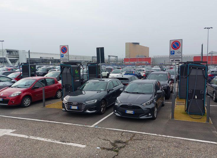 Nel parcheggio di una fiera, ovviamente, mi aspetterei tanti stalli, max da 7 kWh.