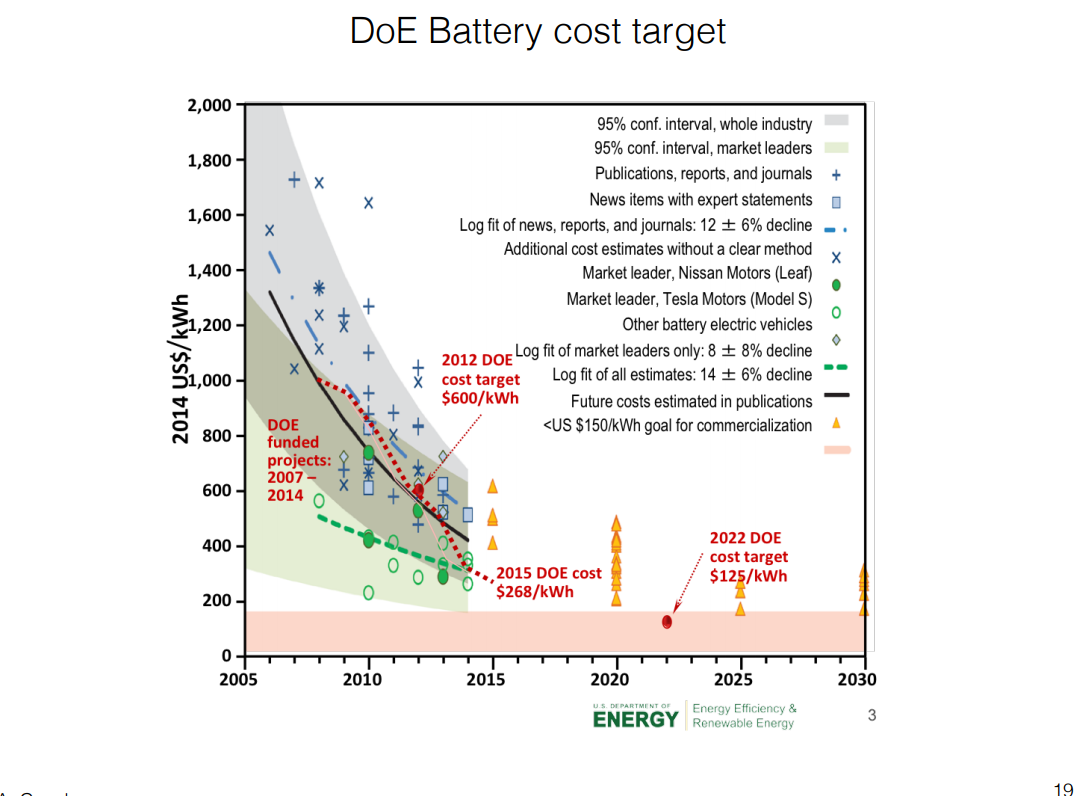 Le previsioni, soprattutto quelle dei grafici, le prenderei molto cum grano salis: in base alla tecnologia sviluppata da chi le genera riportano importanti differenze, giá cercando con un po´ di metodo informazioni riguardo ai costi anche attuali delle batterie si possono trovare costi ben inferiori, non vedo inoltre presa in considerazione la possibilitá di una parziale ricarica in movimento, che alcuni stanno sperimentando e potrebbe diminuire di parecchio la quantitá di batterie necessarie sulle auto.