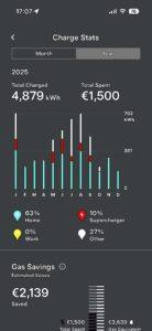 La nostra prima auto elettrica è arrivata nel luglio 2020. Il 2025 è stato però il primo anno completamente “fossil free”: l’ultimo rifornimento di benzina risale a Settembre 2024. Oggi in famiglia abbiamo solo auto elettriche: una Tesla Model Y a trazione posteriore, con batteria standard, che utilizziamo anche per i viaggi lunghi, e una Hyundai Inster dedicata soprattutto agli spostamenti locali, entro 200 km tra andate e ritorno.