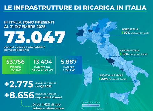 Le ricariche ci sono, siamo a 73 mila punti (+8.656 nel 2025). Una rete che pone l’Italia al livello di Paesi leader come Francia, Germania e UK. Il report di Motus-E in collaborazione con GSE e RSE.