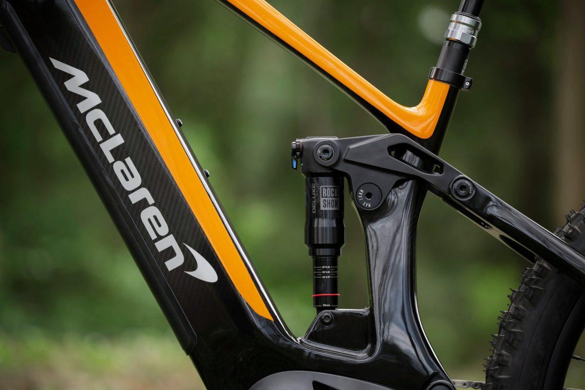 L’alimentazione è fornita da una batteria al litio da 48 V/14,5 Ah/720 Wh integrata nel tubo obliquo. McLaren non ha fornito notizie sulla ricarica e sui tempi che occorrono. La bici viene fornita di serie con una trasmissione con cambio elettronico SRAM XX Eagle AXS a 12 velocità; una forcella RockShox Lyrik Rush RC con 160 mm di escursione. Ammortizzatore posteriore RockShox RS Deluxe Select+ con 145 mm di escursione. Freni a disco idraulici SRAM G2 RE a 4 pistoncini. Oltre a ruote personalizzate con cerchi in carbonio (una da 29 pollici nella parte anteriore e una da 27,5 pollici nella parte posteriore) rivestite con pneumatici Pirelli Scorpion Enduro.