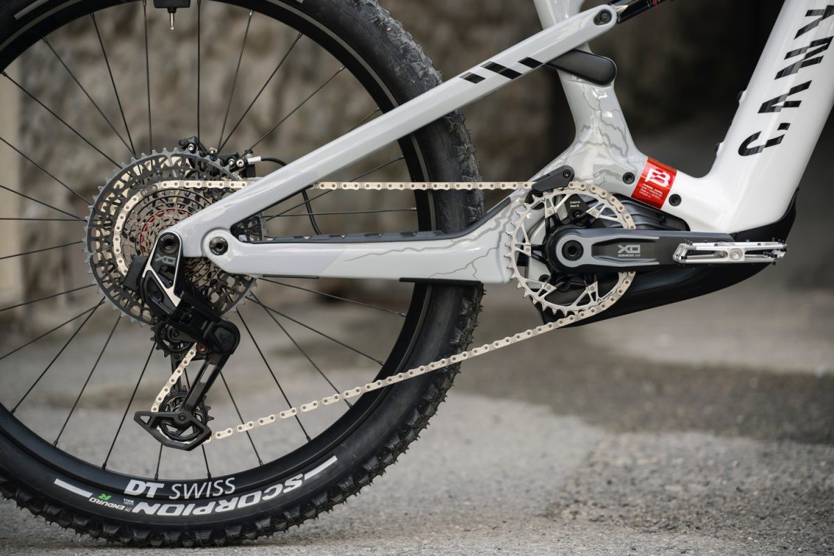 L’ammiraglia Torque:ON CF Roczen (8.999 €) è il top della gamma e nasce dalla collaborazione con il leggendario pilota di motocross Ken Roczen. La bici è equipaggiata con una forcella RockShox Zeb Ultimate da 180 mm e ammortizzatore a molla Superdeluxe C Ultimate. La trasmissione wireless XO1 AXS di SRAM e il reggisella dropper AXS Reverb di RockShox.