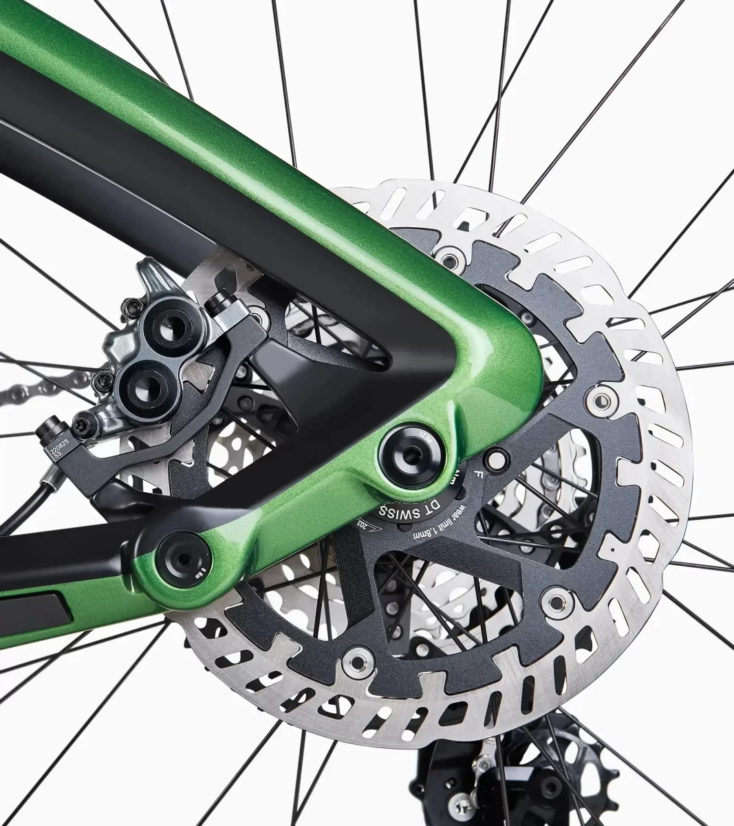 Shimano è pure il cambio XT Di2 a 12 rapporti. Per quanto riguarda i freni, sono quelli a disco dell’azienda Magura modello MT7 con quattro pistoni che assicurano un’ampia frenata. Le ruote in carbonio enduro Syinthesis dal diametro di 29” sono state sviluppate da Crankbrothers, mentre il reggisella telescopico Highline 3 completa la dotazione.