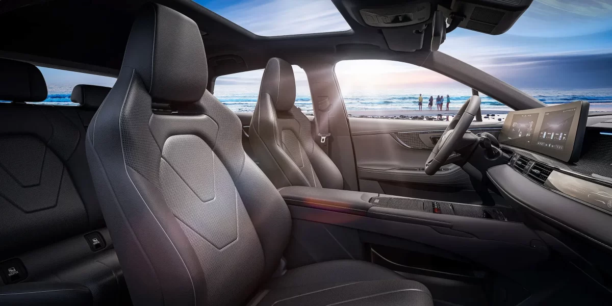 L’abitacolo è minimalista e dominato da una grande plancia che ingloba due display curvi: uno da 10,25” dedicato alla strumentazione e l’altro, da 12,3”, per la gestione del veicolo e delle funzioni multimediali. Le finiture sono buone e anche il design generale non è male. Le plastiche invece rimangono un po’ dure, “leggere” e scricchiolanti. I sedili sono abbastanza avvolgenti e hanno il poggiatesta integrato.