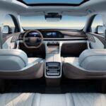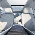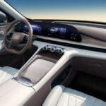 Gli interni sono molto curati. Quello che colpisce è la presenza della pelle praticamente su ogni superficie. La qualità e la cura dei dettagli sono davvero buone. La tecnologia è ben integrata con un display da 24,6 pollici che rende la plancia molto futuristica senza intaccare lo stile degli interni. Ci sono tanto spazi per riporre gli oggetti e l’immancabile ricarica wireless per due smartphone.