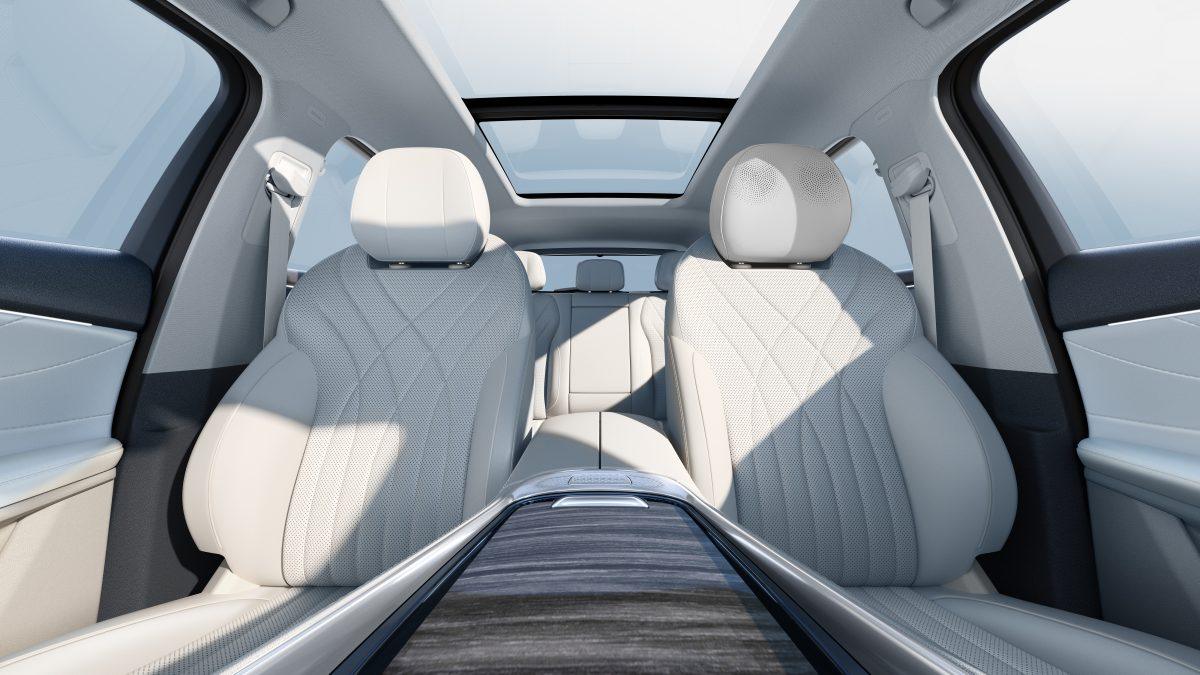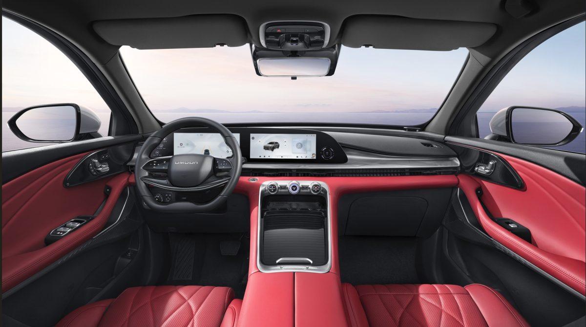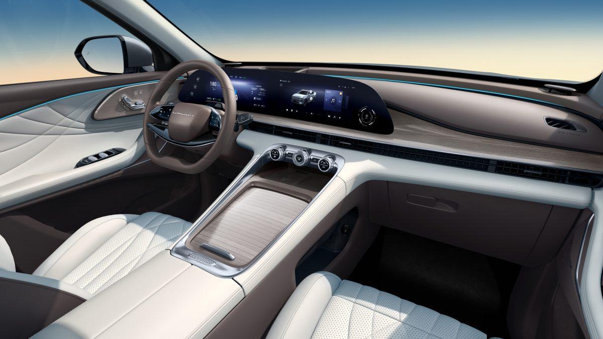 Gli interni sono molto curati. Quello che colpisce è la presenza della pelle praticamente su ogni superficie. La qualità e la cura dei dettagli sono davvero buone. La tecnologia è ben integrata con un display da 24,6 pollici che rende la plancia molto futuristica senza intaccare lo stile degli interni. Ci sono tanto spazi per riporre gli oggetti e l’immancabile ricarica wireless per due smartphone.
