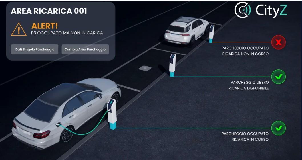 CityZ è specializzata nella gestione del parcheggio intelligente. I sensori ultrasottili Smart Parking Sensors brevettati sono posizionati sulla superficie del manto stradale attraverso un particolare materiale adesivo e consentono di monitorare e ottimizzare l’uso dei parcheggi in città, aeroporti, GDO e aree di ricarica elettrica. I dati raccolti in tempo reale vengono comunicati tramite ricetrasmittente LoRaWan e Gateway alla piattaforma CityZ condivisa con i gestori.