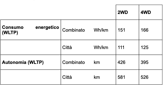 Autonomia di 395 o 426 km