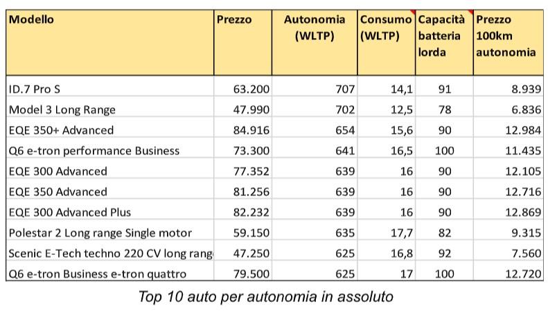 come si può vedere, tolta la solita Tesla Model 3, una grande autonomia si paga molto