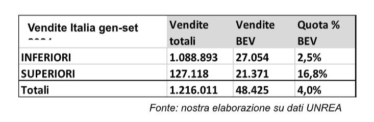 Ebbene, vediamo che la quota delle BEV SUPERIORI vale il 16,8%, contro il 2,5%