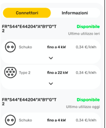 Attenzione perché non tutte le colonnine hanno quei prezzi lì in Francia! In molti casi va sommata una componente a tempo (a prezzi decisamente superiori a quelli mostrati in uno screenshot qui) data la quale la ricarica diventa conveniente solo se puoi caricare a 22 kW, cosa che in pochi possono fare.