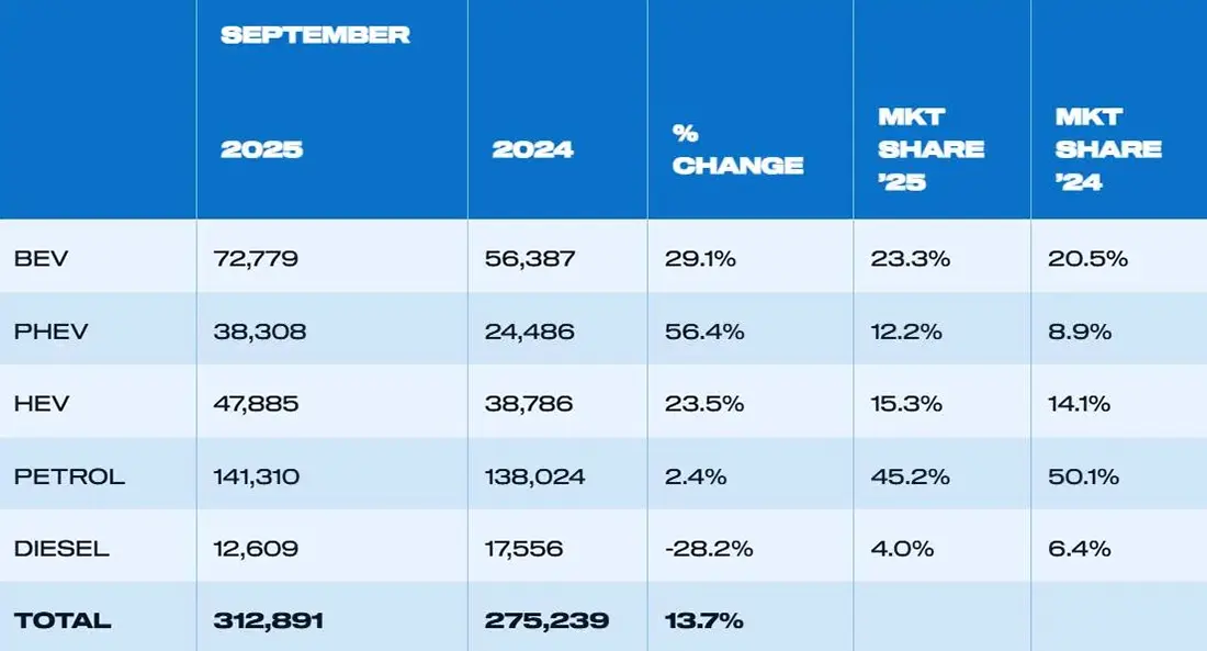 I dati ufficiali non mentono: in settembre nel Regno Unito sono state immatricolate ben 72.779 auto elettriche a batteria (BEV), una cifra mensile mai raggiunta prima. Quasi il 30% in più rispetto allo stesso periodo del 2024.
