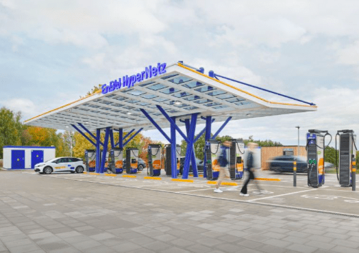 Siamo a Klipphausen, in Sassonia, dove EnBW sta mettendo in funzione un parco di ricarica super-fast coperto sull’autostrada A4. Collegato ad un adiacente parco solare di 12.000 mq., che immette elettricità verde nelle colonnine. I pannelli solari sono integrati in modo poco visibile sui tettoi del distretto industriale circostante. Distribuiti su cinque capannoni di aziende locali. I punti di ricarica sono 20, con potenza fino a 400 kW, in grado di fornire energia per 400 km di autonomia in un quarto d’ora o poco più. La stazione è stata progettata in modo da poter raddoppiare la dotazione in futuro a 40 punti di ricarica. L’impianto fotovoltaico è esteso quasi come due campi da calcio e ha una potenza di oltre 1,7 megawatt (MW). EnBW assicura che 8 veicoli con 200 kW ciascuno o 4 veicoli con 400 kW ciascuno possono essere caricati contemporaneamente. Con l’elettricità prodotta in loco.