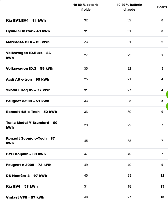 Per studiare il comportamento delle batterie a basse temperature e mettere a confronto i tempi di ricarica in uno scenario realistico, il portale d’informazione sulla mobilità elettrica Automobile Propre ha testato alcuni modelli di EV durante una sessione di ricarica 10%-80%, scoprendo che non tutte le auto elettriche reagiscono allo stesso modo. E che le differenze tra ricariche con batterie “fredde” o “calde” il più delle volte sono minime.