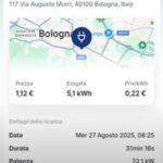 Qui sotto i dati della ricarica effettuata da Luca presso la colonnina Plenitude On The Road di via Murri a Bologna