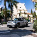 Dna che spicca dalle linee inconfondibili. Nonostante siano molto attuali e molto elettriche, soprattutto all’anteriore che dietro alle forme attuali fa emergere comunque tutta la storia di Mini. Il frontale è pieno, non abbiamo griglie, ma restano molto riconoscibili le geometrie del brand. I fari non sono ovviamente più rotondi come quelli della tradizione, ma lo sguardo non cambia. In compenso il disegno delle luci diurne è personalizzabile sia all’anteriore che al posteriore.
