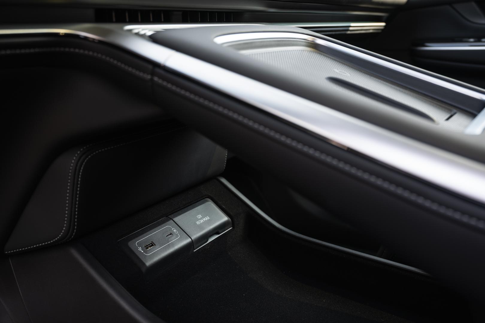Gli spazi sono gestiti molto bene ma senza particolare originalità: il tunnel centrale è abbastanza imponente e nella parte superiore accoglie una doppia ricarica a induzione per smartphone con tanto di raffreddamento. Doppio porta bottiglie e un grande vano porta oggetti. Il sistema audio è firmato Xopera e comprende 18 speaker con tecnologia 3D, con tanto di subwoofer.